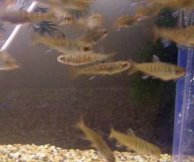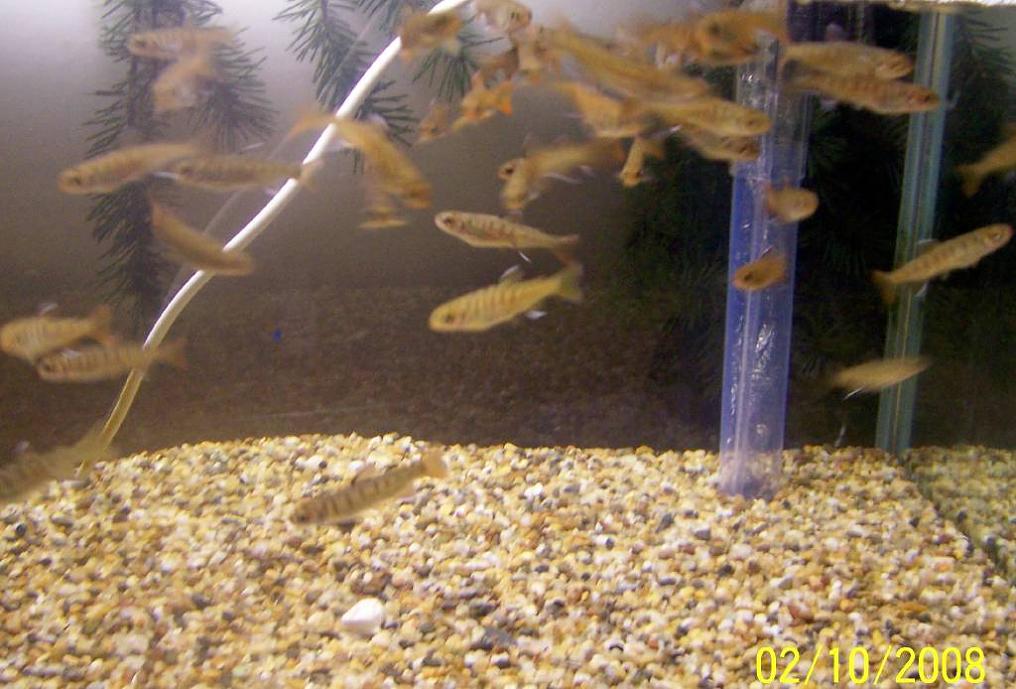 Just teaching my latest crop of Juvenile Coho Salmon to swim.After hatching ,they mostly drag their eggsac around until they get a chance to grab some air,usually during a water change when the top is within reach.Once one goes up top,the rest seem to follow on cue.