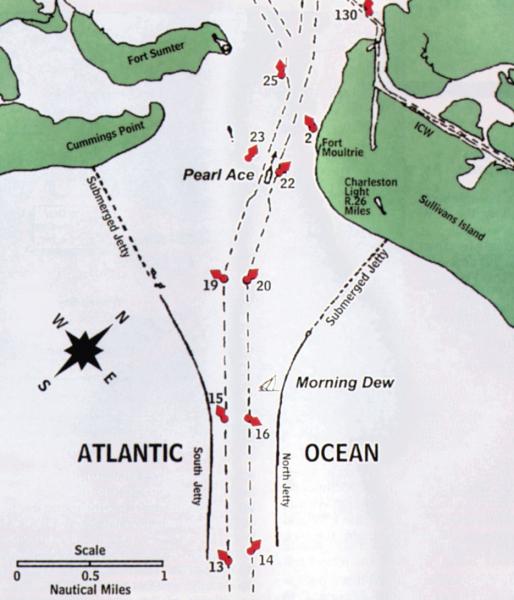 Given his intention to follow the ICW to Jacksonville, is it possible that Morning Dew's skipper missed the turn at the ICW and inadvertently followed the shipping channel to the ocean? Realizing his mistake later, he may then have opted to proceed to Charleston in the open ocean rather than going back eight miles to the ICW. According to investigators, witnesses stated that southbound boaters following the ICW through Winyah Bay sometimes lose track of the ICW and inadvertently follow the main shipping channel toward the ocean.
