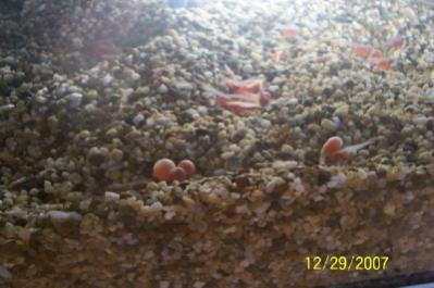 Our fish tank is now brimming with 318 Coho Salmon Eggs from Issaquah`s Salmon Hatchery which arrived on X-mas eve of course.