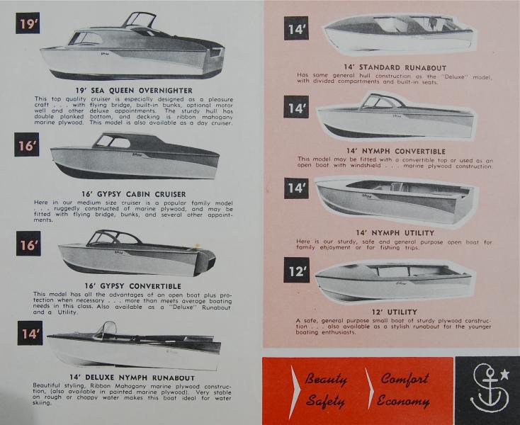 Here are some miscellaneous brochures and photos of their late 1950's boats.