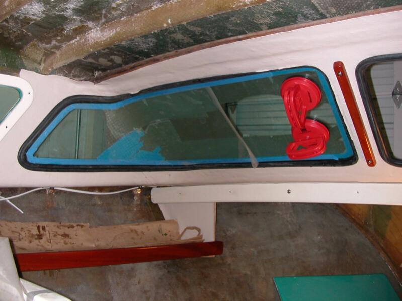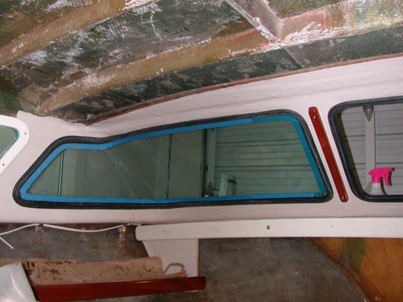 My daughter Zoanna came up to Friday Harbor saturday to give me a hand with the interior. We spent the day installing the vinyl around the windows. Now that the vinyl is in the wrap-around windows can be installed. Put this off to the last..!