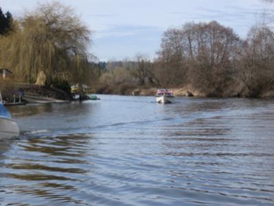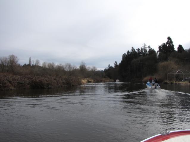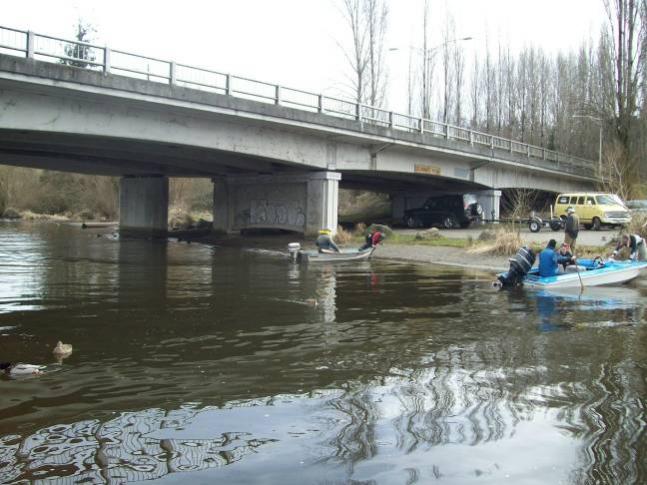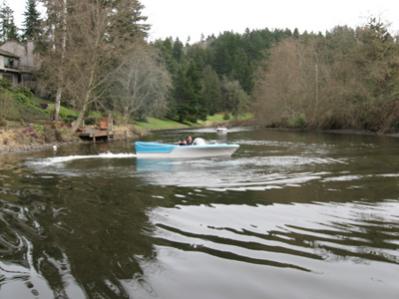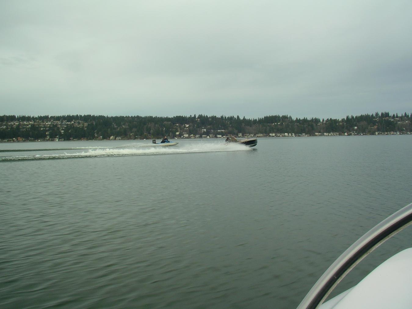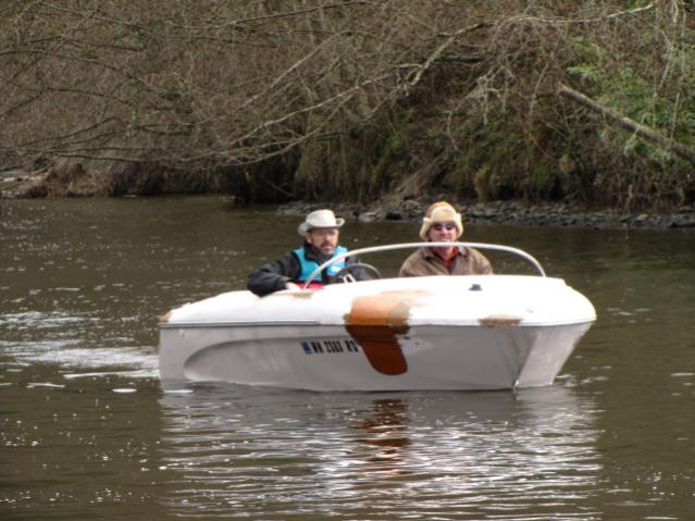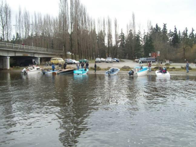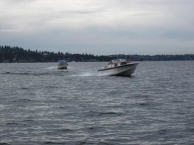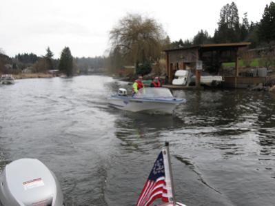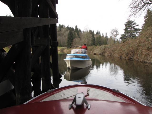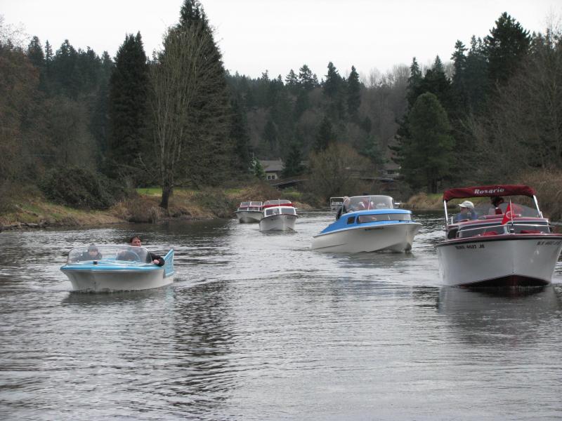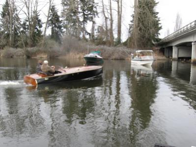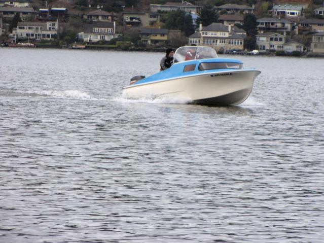 It was great to finally meet some of you personally and see some of your boats up close. Knowing what we did to our freebee I feel sorry for Brian as the bottom of that beautiful little boat probably looks like the bottom of mine. Bumped over a lot of things but the grounding on the gravel bar with the GPS reading 26 mph drove rocks through the intake screen and locked things up. Brian was right behind us and saw what was happening but made the wrong choice of direction and grounded hard enough to have to get out to free himself. Working the flywheel back and forth freed ours up enough to reach Lake Washington but it started acting up so we headed back to the ramp at Kenmore and called for our trailer. Sorry to miss the end though. Barry
