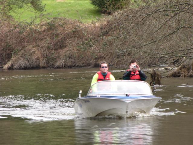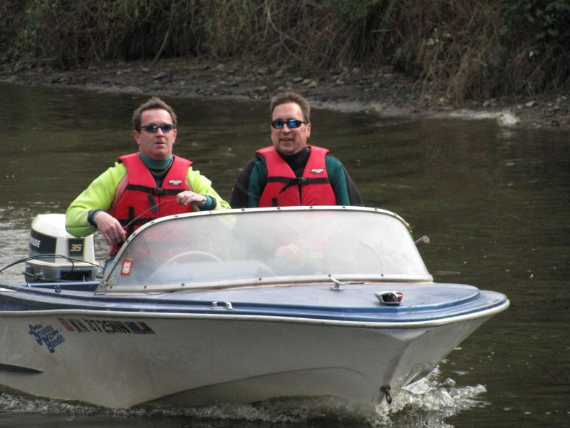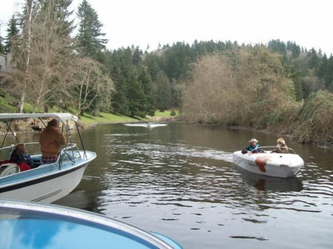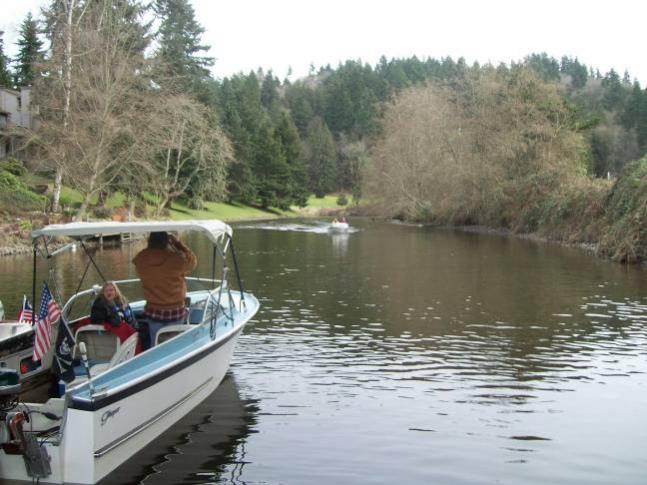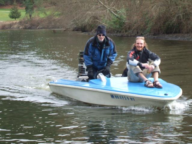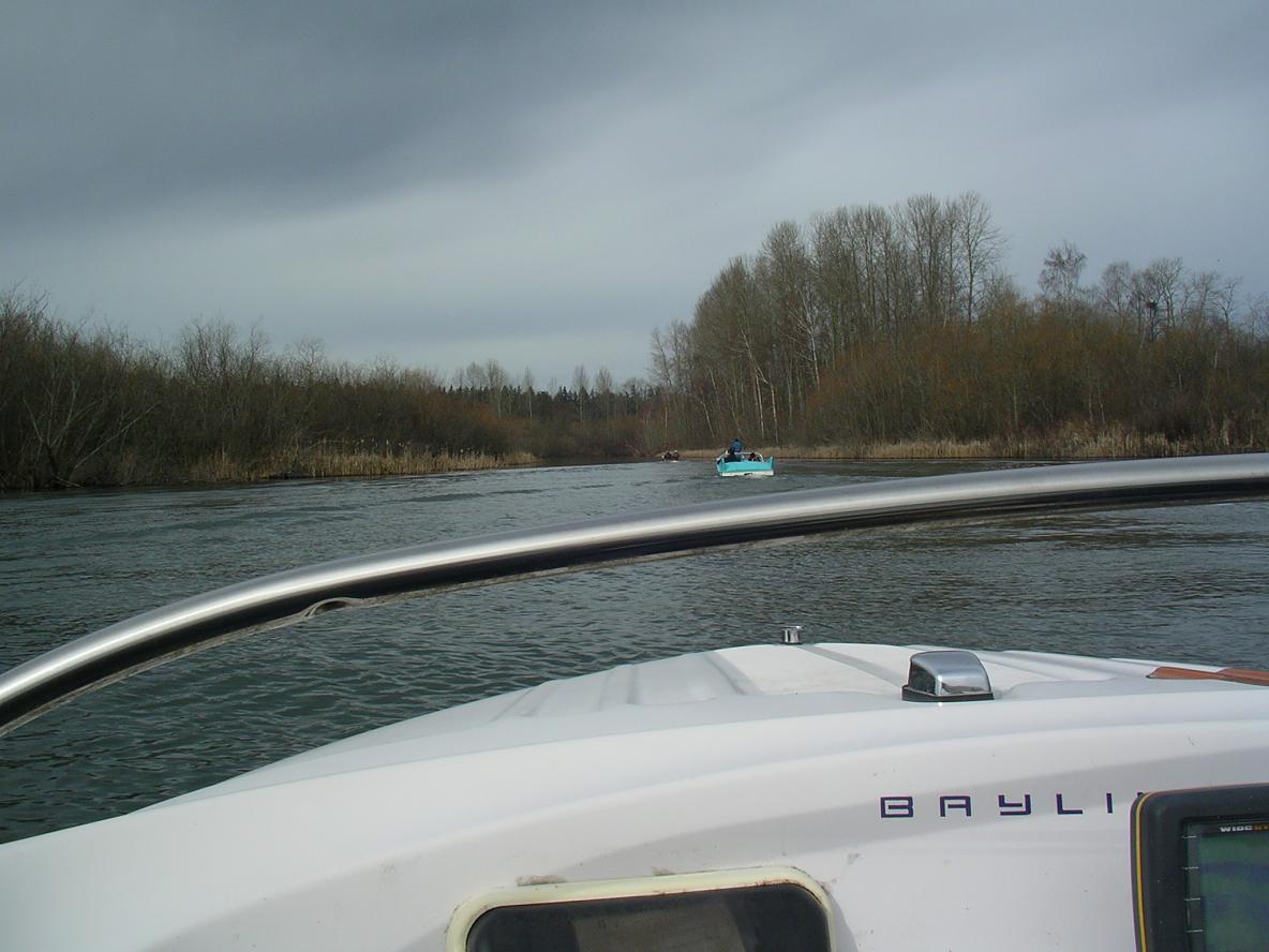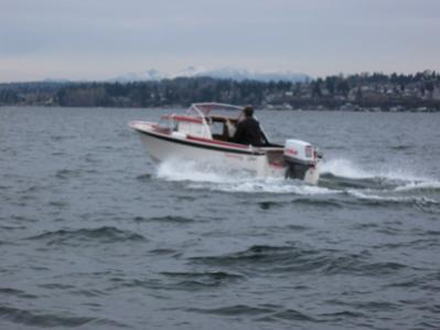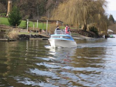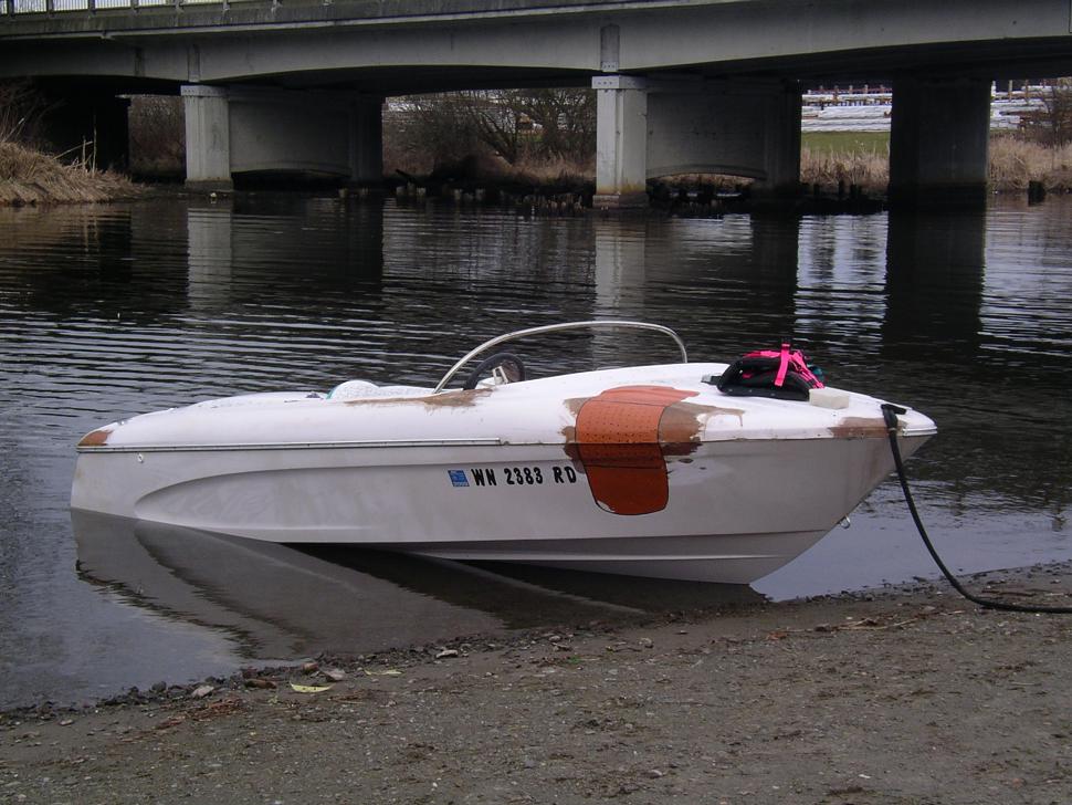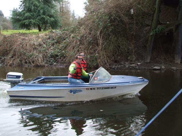 Cole and I got up this morning and the weather man said it was going to stay dry until the afternoon, so we decided to run up to Issaquah. The original plan was just to run across Sammamish to the fish wier and then turn back. But it looked so calm, and Dick Dow said the willows had been cut back... Four and a half hours later we made it to Coulon park! So much for a plan. It was a great way to literally break in the little Playmaster. We ran over the fish wier, ripped the windshield brackets off in the willows, and followed Barry (Sparrowhawk) into 2" of water on a rock bar at 24-26 MPH. The boat was built to be used though...I built it once, it can be rebuilt. Actually, we made it without any major damage. The bottom has a few nicks, but no holes. The impellor seems to have spit out all the rocks and ran great on the trip from Kenmore to Renton. I ran out of gas just past the 520 bridge, and switched to the reserve portion of the tank. There was just enough fuel to get me within 400 yards of the docks at Coulon! Thanks to Tom from Oregon, we only floated for 2 minutes before he dropped off enough to get us the rest of the way. We had a great day, with some great friends and Cole has a story for school on Monday that will beat all the other "what did you do this weekend" stories! Thanks again to everyone that helped us and made the day such a blast!BRIAN FRANCHINI