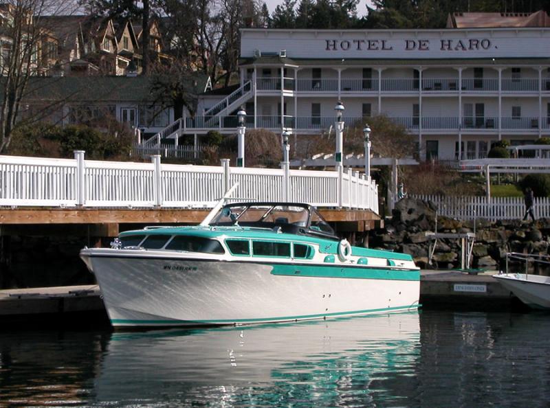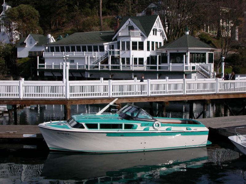 Then I ran around the island and pointed the old girl to Spieden Channel. I stopped briefly at Lonesome Cove resort, but their floats were out, so I didn't land. On up Spieden Channel and around into Roche Harbor. I motored into the inner harbor, right up to the end of the fuel dock. I was surprised to see about a dozen people on the dock with their cameras pointed at the Saratogan.