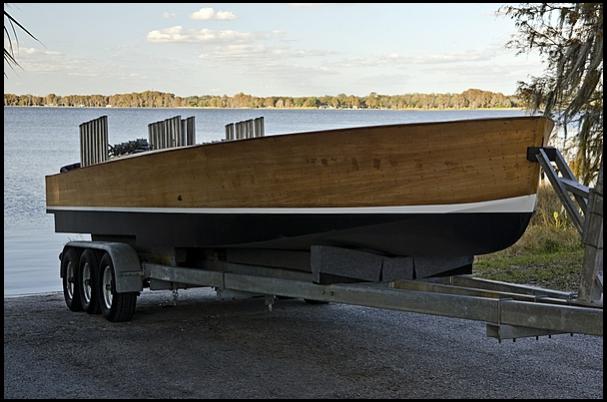 The engines are finished, looks like without the superchargers, and with four 1150 CFM Holleys! The hull isn't complete, needs finish and hook up the engines.