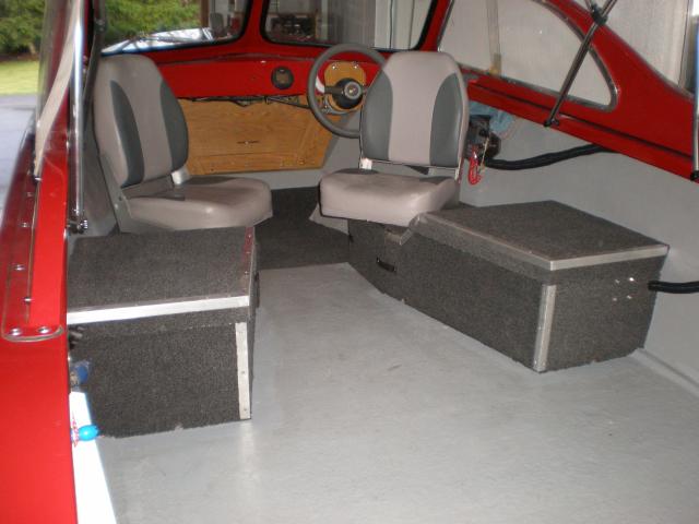 Hey Ross Nice to hear from you. Those seats/tanks combo sure do look nice! If you are using Home Depot / Lowe's "indoor /outdoor" carpet, it will last forever. The Rosario still has the same carpet in it ( unless Jerry changed it ) since 2003 and my Skagit has it as well for the last two years.See that vacuum ? U need to get one of those to keep your carpet spiffy. Nothing like a vacuum when out on the high Sea's. LoL ! What i did on the carpet as far as having snaps, i screw down the carpet across by the bulkhead with a nice looking washer and then add a colorkeyed snap like a person uses on their canvas.It makes it look like it is just snaped down. Being i don't fish i have no need to be taking it up to wash it only vacuuming it. If it gets water on it i roll it back and let it dry out or use a shop vac. Only happen one time at Lake Whatcom back in about 2005 in a all night rainstorm. Best,Chuck