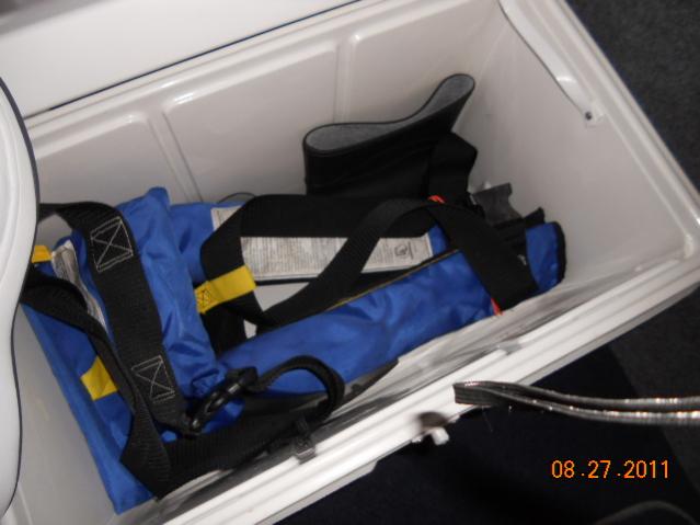 Rick, The Vessel Examiner told me it was illegal to have the "Socks" covers over my ice boxes. Ask him why,he said if a person need to get a life vest they might not know were to look and besides he said i would need the boxes for fish ! I told him i don't fish. The other ice box hold oil, buddy anchor, tools,etc. I told him the only time they are in the ice box is when the boat is home or when we are off the boat on shore and besides there are only two vests in there for myself and my son or Sheila. When on board we always have them on and anybody else we point out the storage bag in the cabin with 5 other vest. Sometimes i think they start to make up their own little rules. Chuck1957 17' Skagit Express Cruiser