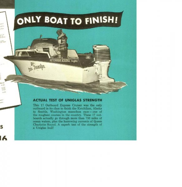 I have all of the paperwork on my boat from the original owner to my grandpa who purchased it back in '64. Even have the glass promo ashtray in new condition. Not much on the smaller Uni's on the web though as far as production numbers, development, etc. It seems that there aren't too many 19's around.