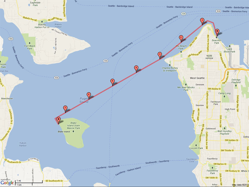 Nestled between Bainbridge Island and Vashon Island, the 476-acre island once was privately owned and then in 1974 became Blake Island State Park.Blake Island is a favorite location for kayaking, bird watching and year-round camping or stopping off and watching the world go by. The popular Northwest attraction and tour, Tillicum Village, is located at the north end of the Island and is a daytime cultural attraction for visitors during the summer.The island's proximity to nearby Bremerton, Seattle, Tacoma and other surrounding cities makes it a stop off destination for daytime and overnight trips.Blake Island, which can only be reached by boat, has 15 miles of hiking and bike trails, three campgrounds and approximately 1700 feet of saltwater shoreline. The Island has views of the Olympic Mountains, Puget Sound and the Seattle skyline.
