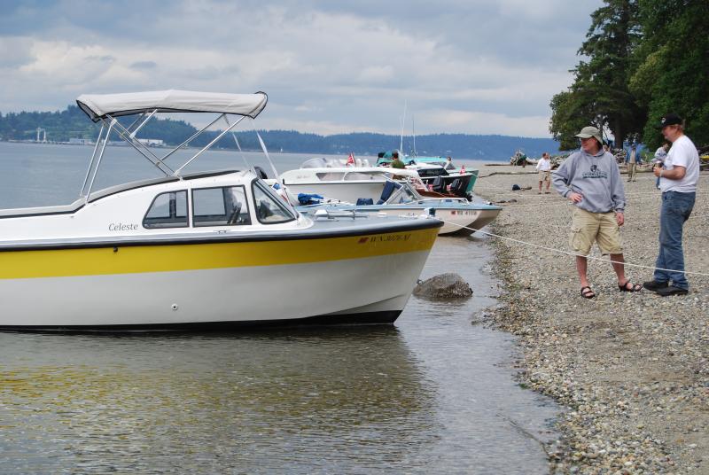 Ok, We need to start a list of the people that will be attending Sunday the 23rd of this month. We will meet up at the Northwest end of the Blake Island around 11-11:30am to have lunch ( "brown bag" ) and if you would like to explore the island (Tillicum Village) that would be up to you. You can pull your boat up on the nice beach ( no big rocks ! ) or anchor just offshore. Being the island is centrally located in Puget Sound ,you can launch your boat just about from any place on the Sound like, Everett,Edmonds,Kingston,Winslow ( Bainbridge Island),Bremerton, Seattle,Tacoma,Gig Harbor,Poulsbo,etc. Below is some information on the Island. I included some pictures from earlier events at Blake. You can used a Buddy Anchor or just any anchor on the stern to more or less keep your boat straight from not going sideways onto the beach. As far as tides go,just check your tide book.