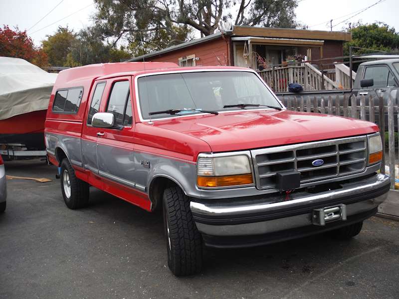 Here's mine. 1995 F-150 extended cab. First truck I've ever owned, but I was pretty sure I couldn't tow roughly 4,000 pounds of Bellboy-21-plus-trailer with my Kia Optima. I got it because it was for sale locally at a good price. Color was completely unimportant.