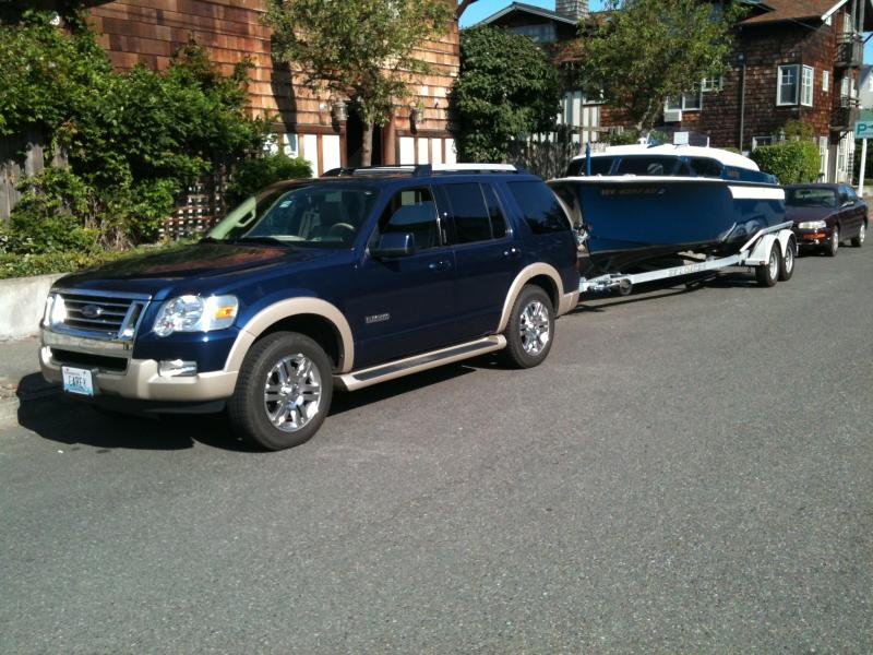 The only towing rig I have is this Ford Excursion shown here hooked up to the "red boat.