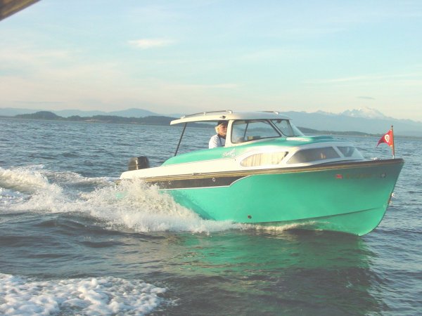 Previous boat (turquoise, black, white) sold 2 years ago. That was all original gel coat from factory. Almost a twin to Melanie's "Kanigo". Seller got it from the owner or relative of Des Moines, Wa marina. The Des Moines owner put a lot of bucks into the electronics, was a super deal.