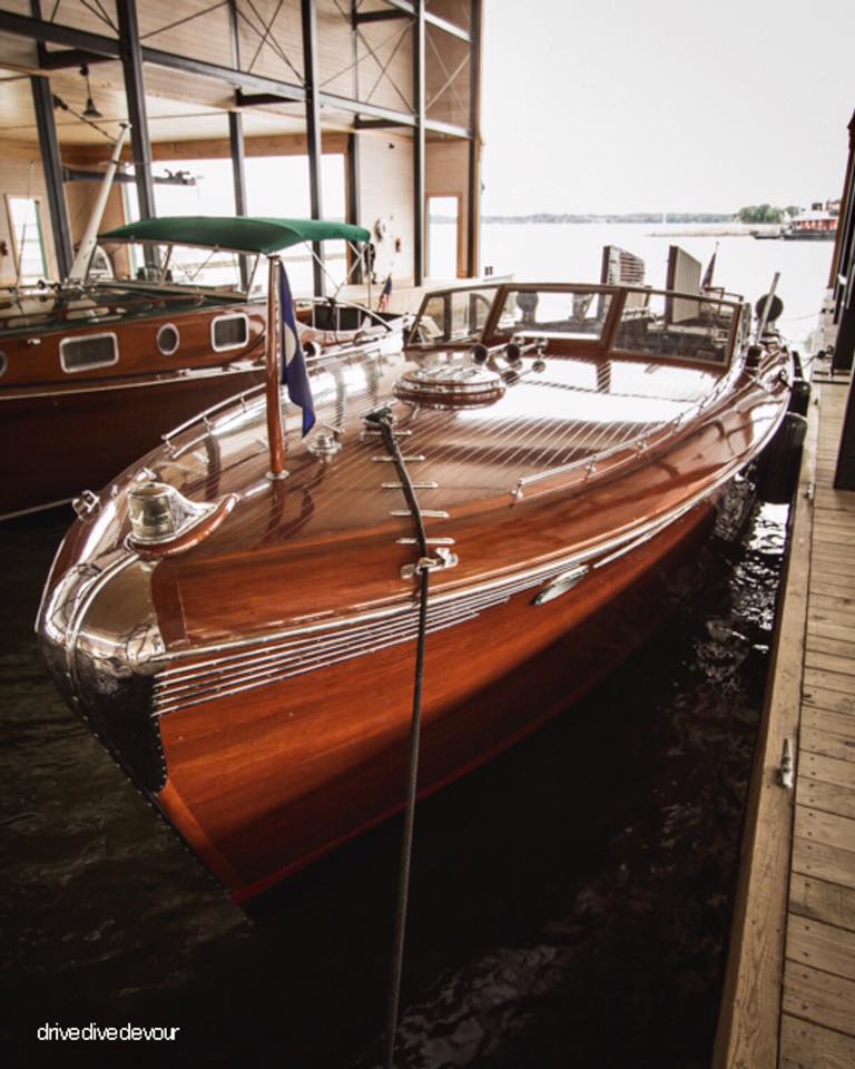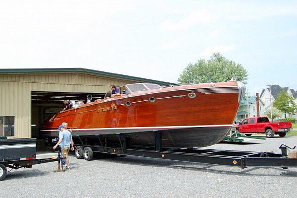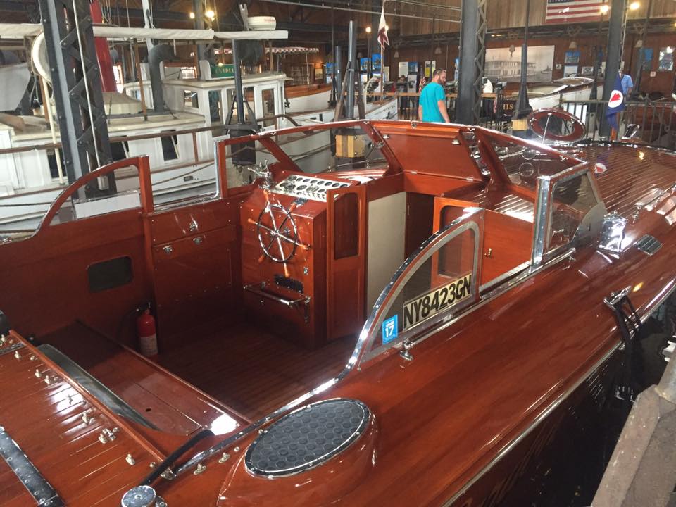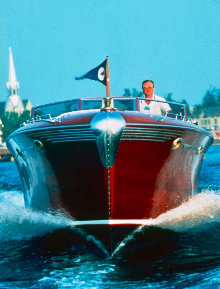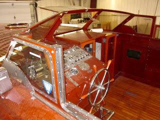 A John Hacker design. Built in New York in 1948. She's 48 feet long, dual cockpit. Powered by a single Packard 4M-2500 1500 hp V-12 engine. Top speed about 50 mph. Many unique features including roll up windows. Currently owned by the Classic Boat Museum in Clayton, New York.
