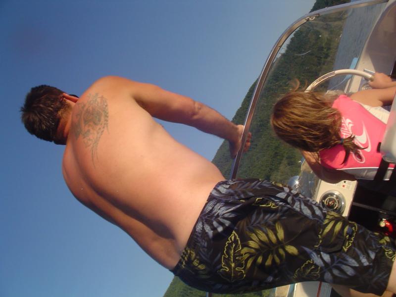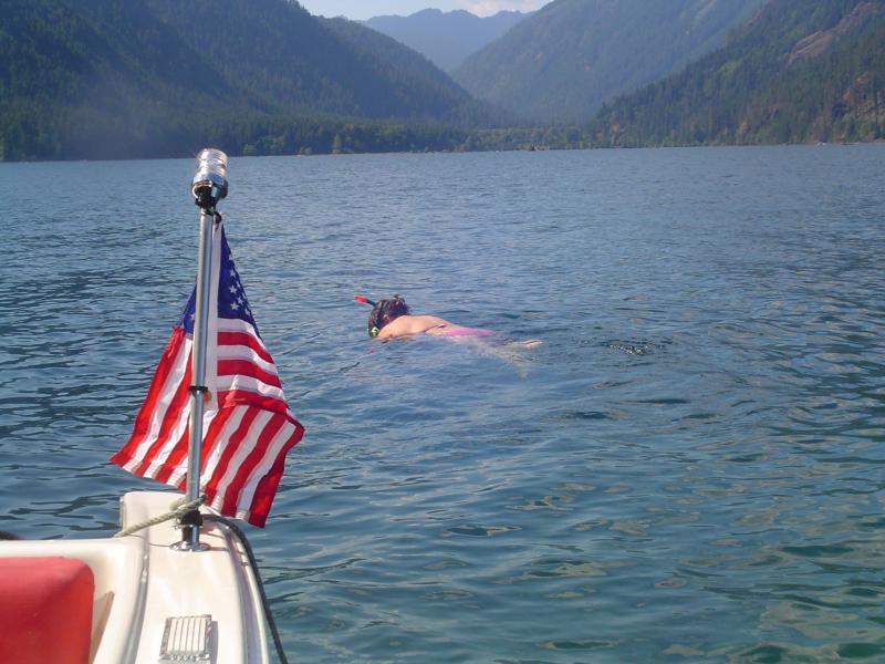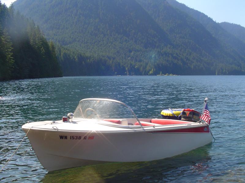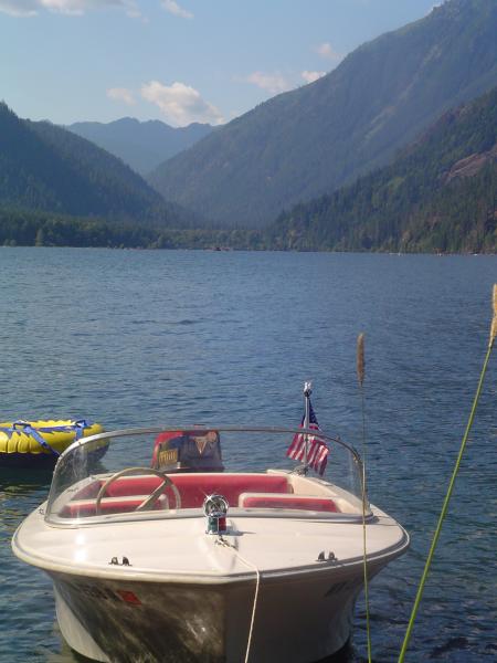 we've been really trying to use rather than work on our skagit this summer after a winter of re-wiring and replacing all chrome and lighting, thanks to perko, its a great lake with many launces and many private coves fro swimming, be sure to bring at least one or more anchors as there is not much beach, its mostly stone into the water, but often 4-6 ft deep just a few feet from shore, and yes the water is plenty warm for swimming, and yes my 5 year old is driving the 50 yrs old skagit! cant startem to young!