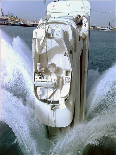 Luv it! Have a story of a stern first launch where I nearly swamped a 24 foot Fiberform. Guess it is a little long to explain here but it involved a trailer on a steep I beam ramp and a complete release of the motor that was supposed to put it slowly back into the water. What a rush it was to see the wall of water coming over the transom!