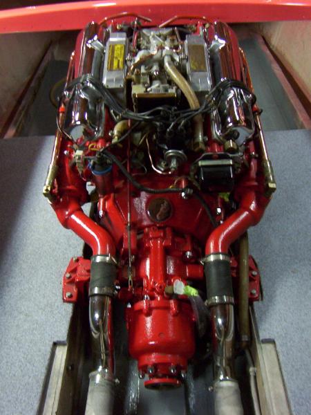 She has an AMC 327CID 255HP V8 Gray Marine with duel side draft Carter carbs. Pics attrached.