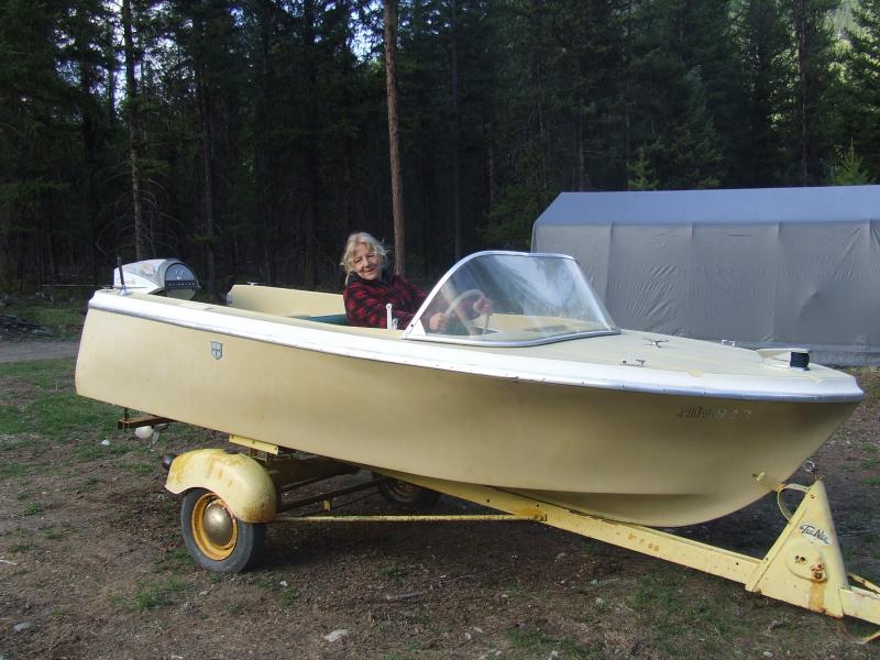 Hi Chris, welcome to the forum. That's a cute boat, looks just right on the TeeNee. Your better half looks pretty happy behind the wheel, maybe if you do a good job on the restoration she'll let you drive it every once in a while!