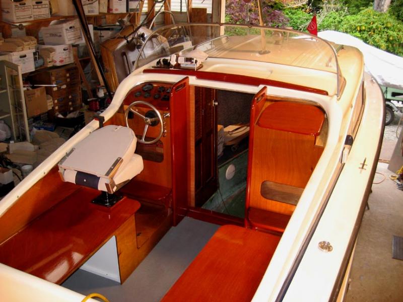 Hi Marty - I just took a minute to check out your website and it looks like you did an incredible restoration on a boat just like this - wow! In the cabin it looks like there is no porta-potty or sink is that because you decided to remove them entirely in favour of more room for lounging or is it because the boat did not have those features originally. I'm just dying of curiousity to know what one of these looked like when it rolled off the line...