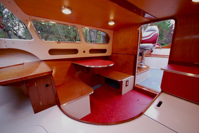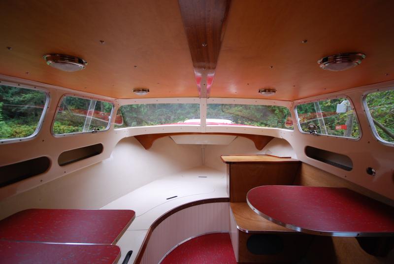 Most of the original Skagit 20 Express models came with a cabin interior that included molded-fiberglass sink against the bulkhead, with water tank mounted on the outside of the cabin bulkhead; marine head under a hinged lid; pop-up dining table that became part of the forepeak berth when not in use, and a few storage cubbies for dishware and miscellaneous. They were never 'fancy,' just functional, but the nice thing about restoring old classic-glass boats is that you can do whatever you want: Nobody's going to descend on your boat with a list of original specifications and a tape measure to be sure you reproduced a factory-original interior! (By the way, if you want to see a totally original/virginal Skagit 20 interior, get together with Bruce Bridwell at some future boat-club event and look at his gorgeous 1958 Express...just the way it was 54 years ago.)