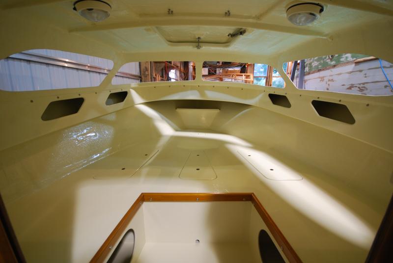 If you're looking at website photos of the 20' 1958 Skagit we worked on recently, owners Charlie and Pat wanted a clean approach to the interior...and they didn't feel a need for galley, dining table, built-in porta-potty or other such items. The boat features several lift-out deck lids to access storage cubbies under the generous forepeak berth, but I really liked their clean, straightforward approach.
