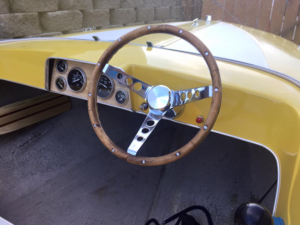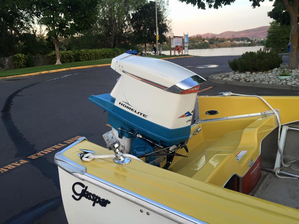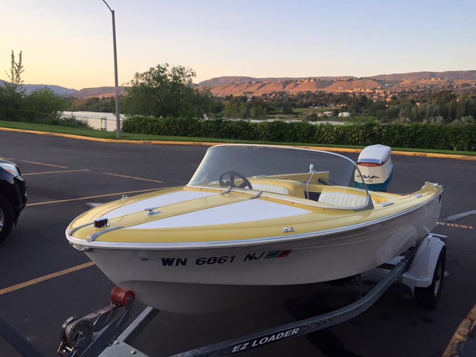 So my boat is a 1960 Glasspar Marathon 14'. I found it on Craigslist after looking for the "right" project... not too much work, but vintage. Other than some clean up and cosmetics, she was ready to go as purchased. I have replaced all the hardware with new but period look, NOS cable steering parts, and am in the process of adding navigation lighting and gauges.