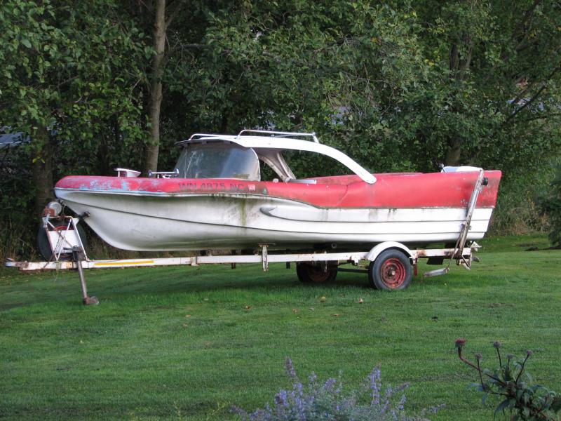 Hello, My name is Ron Wiebe, I live in Bellingham. I have attached some pictures of the boats I currently have on the go. The red one is a 1959 Redfish. It has a 1960's 45 hp Johnson. It needs a new floor and a complete restoration. The other is a 1958 Glastron Surflite with a 1958 Johnson 35 hp. I have had them for a while and am wanting to restore them and use them in Bellingham Bay sometime soon. I also own a 1957 Chevy nomad which I am restoring also. Love the fins. I don't know much about them but want to learn. Both need windshields. Any others have similar boats out there?